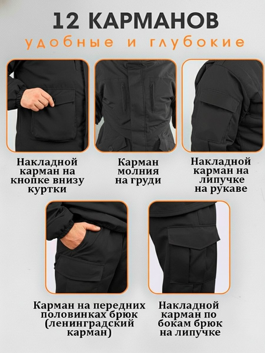 * На куртке — 6 карманов: 2 нагрудных на молнии, 2 накладных боковых с клапаном на пуговице, 2 накладных с клапаном на липучке